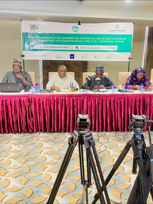 Le 30 août 2025, s’est tenue à l’Hôtel Bravia de Niamey la cérémonie officielle de lancement des activités des ONG en charge de la mise en place et du fonctionnement des organes de Gestion Intégrée des Ressources en Eau (GIRE), ainsi que de la mise en œuvre de l’engagement citoyen, dans le cadre du Projet Intégré de Sécurité de l’Eau au Niger (PISEN).
